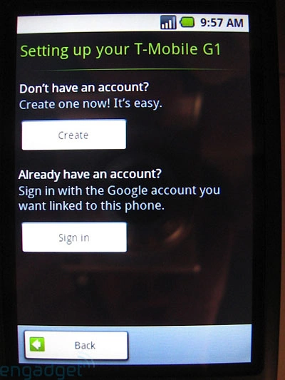 | Dòng chữ T-Mobile G1 nổi lên khi khởi động. | |