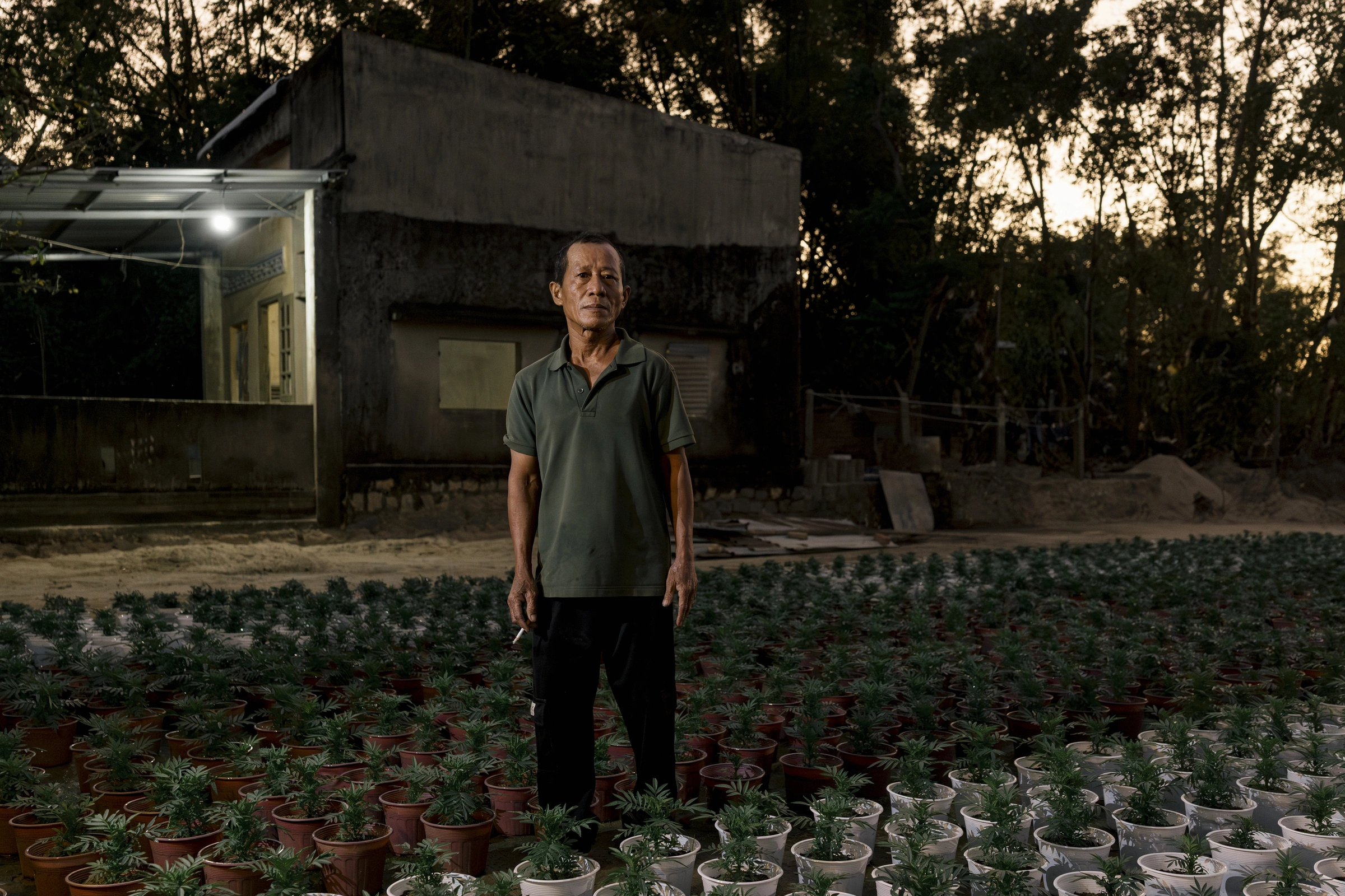 Năm nay, ông Trần Thái Quý (57 tuổi, thôn Ngân Sơn, xã Tuy An Bắc, Đăk Lăk) trễ nhịp hoa Tết vì thiên tai. Ảnh: Hoàng Việt