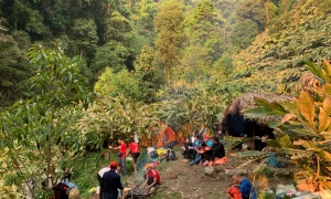 Tại đây có một lán nương nhỏ được bà con người dân tộc dựng để trồng và thu hoạch thảo quả. Lán nhỏ không đủ cho 30 du khách và 17 porter nên các porter đi trước đã dựng thêm lều cho đoàn ngủ đêm.