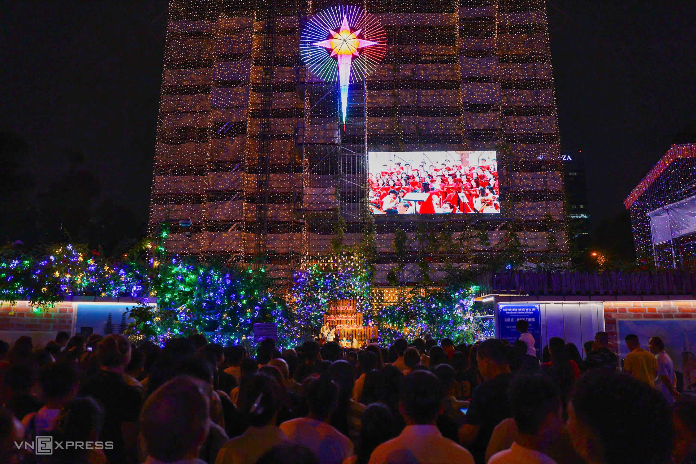 Lúc 20h, Nhà thờ Lớn bắt đầu chương trình âm nhạc với các bài hát ca ngợi Chúa.