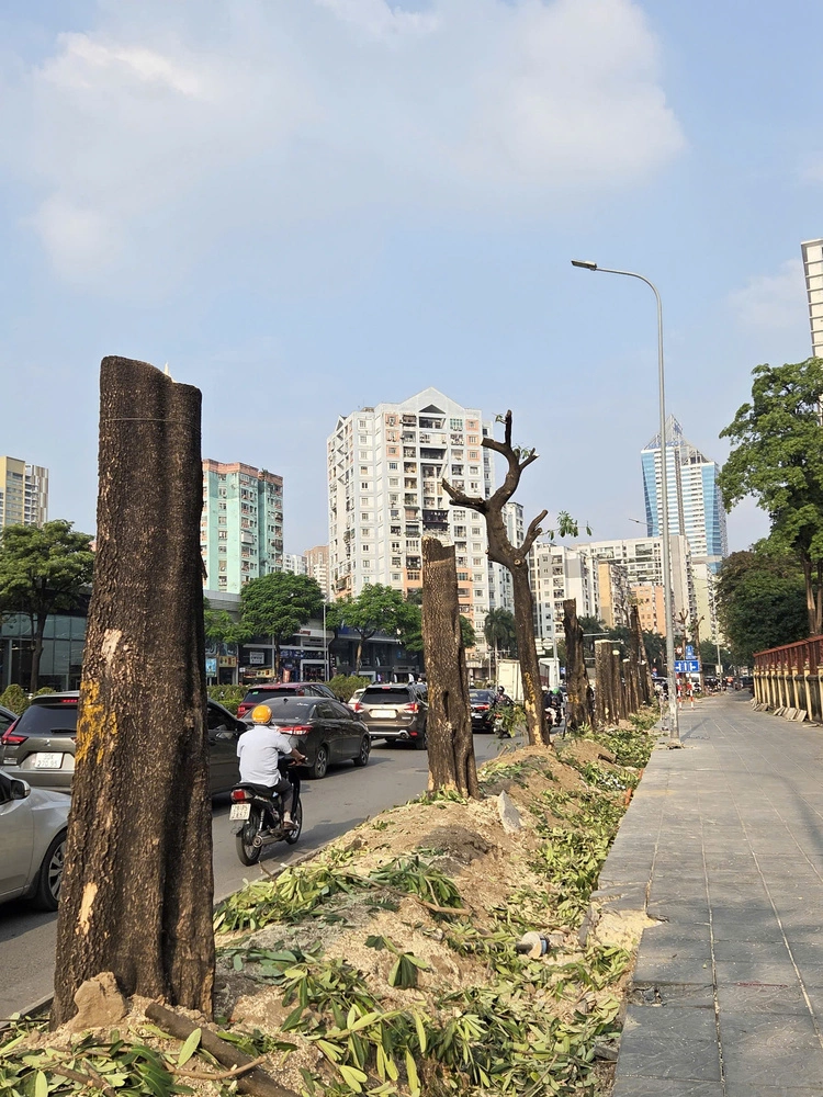 Trong phạm vi mở rộng mặt đường Lê Văn Lương và Hoàng Minh Giám, có 52 cây xanh phải di dời hoặc chặt hạ. Những ngày qua, đơn vị thi công đã cắt tỉa, chuẩn bị di dời khoảng 40 cây. Riêng hàng cây hoa sữa bị chặt hạ do có đường kính lớn, già cỗi, không bảo đảm khả năng sống nếu đánh chuyển.