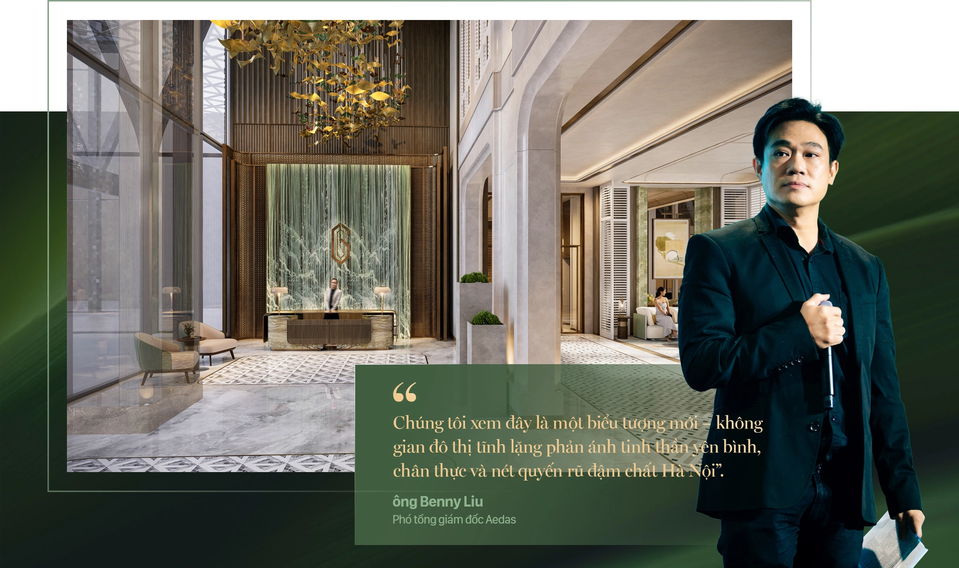 Ông Benny Liu - Phó tổng giám đốc Aedas cho biết quá trình sáng tạo bắt đầu từ việc nghiên cứu văn hóa Việt Nam, làm nền tảng cho câu chuyện thiết kế. Từ đó, nội thất Galia Hanoi kết hợp giữa thiên nhiên, văn hóa lẫn kiến trúc, tạo cảm giác thân thuộc, gắn bó và kết nối trong không gian sống cao cấp, tinh tế.