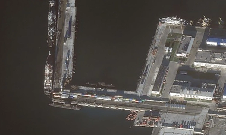 Ảnh vệ tinh thương mại chụp ngày 16/12 cho thấy một mảng lớn ở cầu cảng đã bị hư hại trong vụ tập kích, tương ứng với vị trí tàu lặn lao vào và phát nổ trong video được Ukraine công bố.