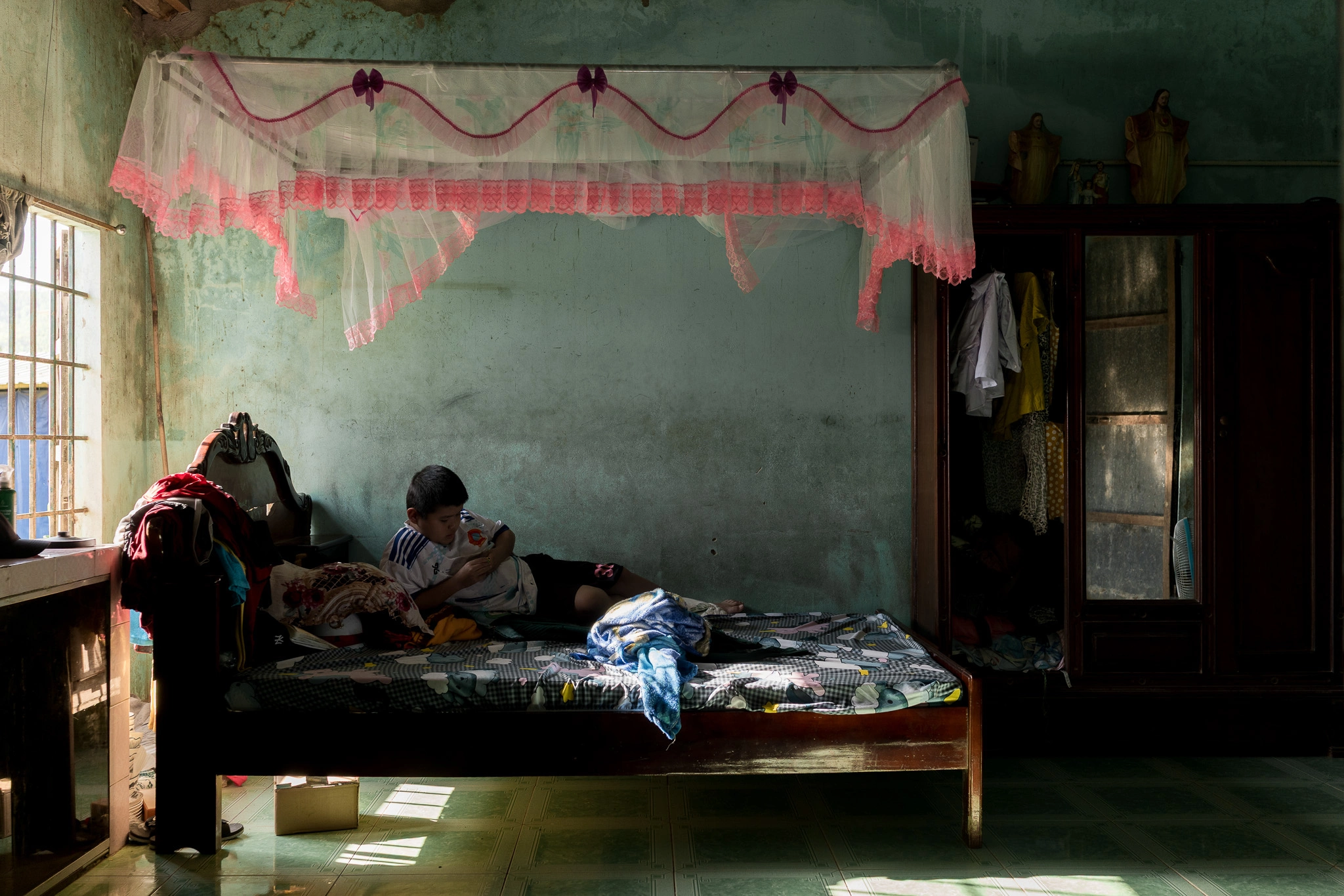 Tối đó, đứa con trai đầu 10 tuổi cứ đấm thùm thụp vào ngực khi thấy mẹ khóc. Chị Ngân nói đó là cách con thể hiện sự bất lực. Cậu mắc rối loạn phổ tự kỷ, căn bệnh chị gọi là "bệnh nhà giàu". Còn đứa con gái thứ hai mới 2 tuổi, quen mùi ba ngủ kế bên, nay không còn nữa, cô bé cứ khóc mãi.