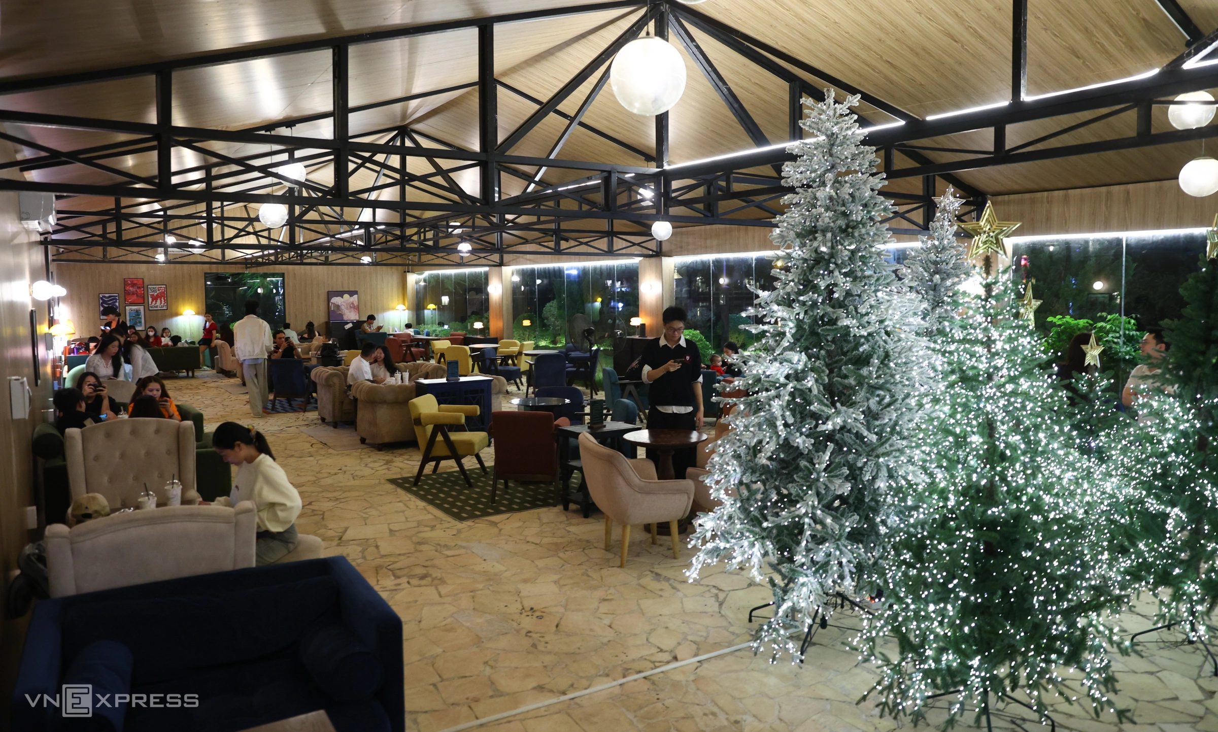 Nằm trên đường Trần Xuân Soạn, quán cà phê trang trí chủ đề Noel để đáp ứng nhu cầu vui chơi, chụp ảnh tăng cao nhịp cuối năm. Quản lý cho biết khu đất được cải tạo thành 'công viên Giáng sinh', gồm không gian ngoài trời và trong nhà lên đến 10.000 m2.